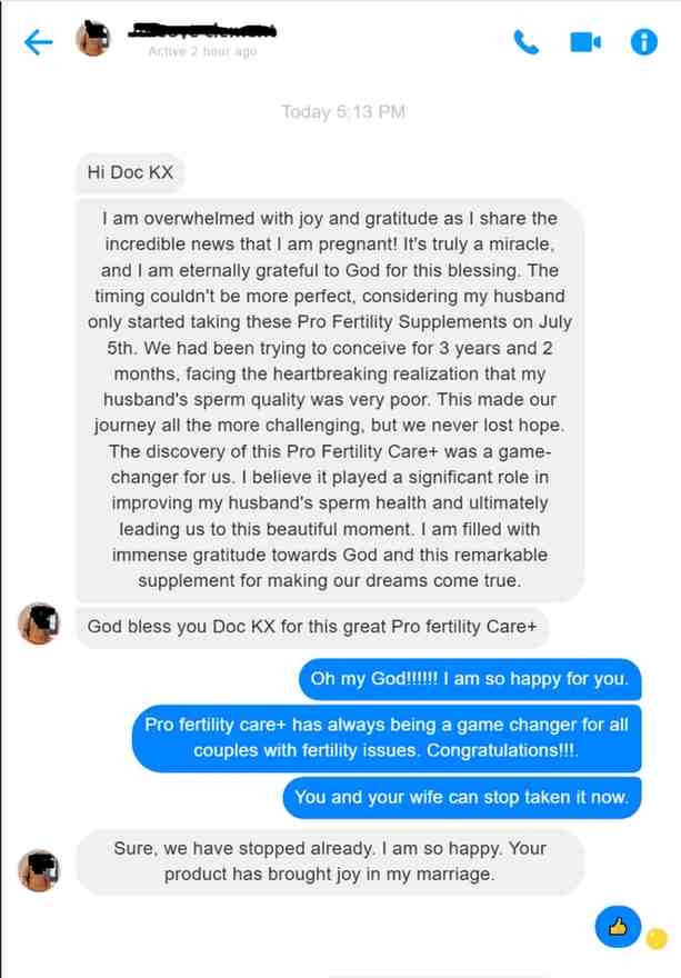 "My husband started using this Pro fertility Care+ about 2 months ago and I can see major improvements. His sperm is no longer Watery, he lasts longer and has more energy. Love it"